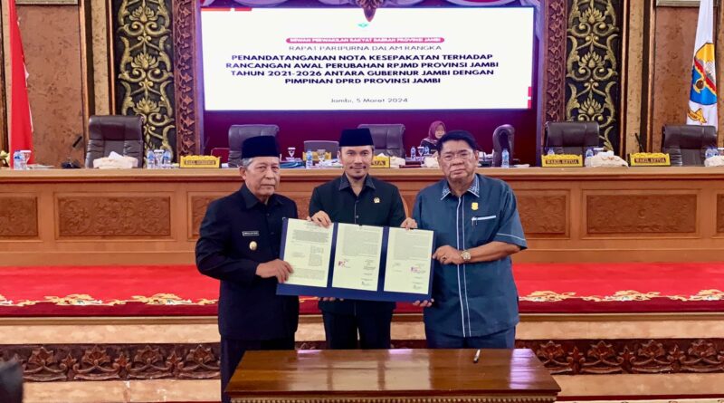Atas kesepakatan tersebut, dilakukan penandatanganan persetujuan bersama antara Gubernur Jambi yang diwakilkan oleh Abdullah Sani dengan pimpinan DPRD Provinsi Jambi serta penyampaian rancangan awal RPJMD Provinsi Jambi tahun 2021-2026 oleh Gubernur Jambi.