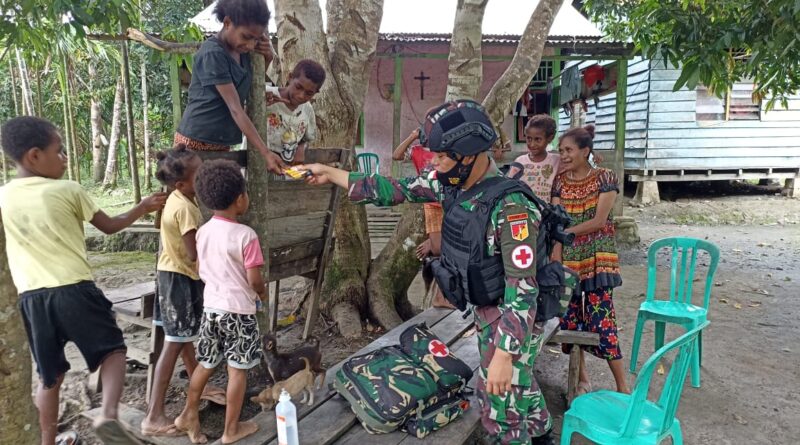 Satgas Pamtas RI-PNG Yonif 711/Raksatama Pererat Silaturahmi dengan Warga Perbatasan Melalui Yankes Gratis