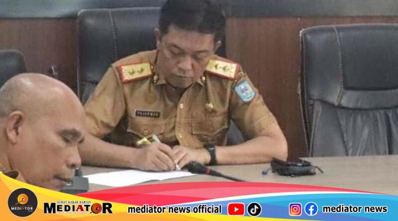 Penjabat (Pj) Bupati Merangin Jangcik Mohza diwakili Sekda Fajarman, mengikuti jalannya Rakor rencana pelantikan kepala daerah terpilih Pilkada Serentak 2024 bersama Menteri Dalam Negeri Tito Karnavian secara zoom meeting, Senin (03/2).