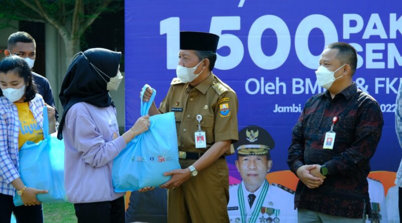 Wakil Gubernur Jambi Drs. H. Abdullah Sani, M.Pd.I. mengemukakan, Pemerintah Provinsi Jambi berkerja sama FKIJK, BMPD, OJK dan BI Perwakilan Jambi, memberikan bantuan paket sembako kepada masyarakat dan pegawai honorer, Provinsi Jambi.