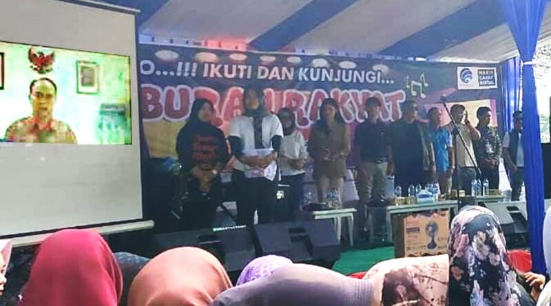 Ratusan masyarakat Kabupaten Merangin tumpah ruah membanjiri jalan jalur dua depan Kantor Dinas Kominfo Merangin, menyaksikan acara Hiburan Rakyat dan Literasi Digital Kominfo yang berlangsung spektakuler, Minggu (19/5).