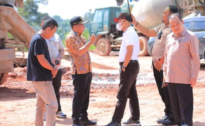 Pj. Bupati Tebo H. Aspan S.T. didampingi Ketua DPRD Mazlan S. Kom. dan Kepala BPBD Sulaiman S. Ag. melakukan peninjauan ulang proyek Dana Pemulihan Ekonomi Nasional di Kecamatan Muara Tabir, Jum’at (03/06/2022).