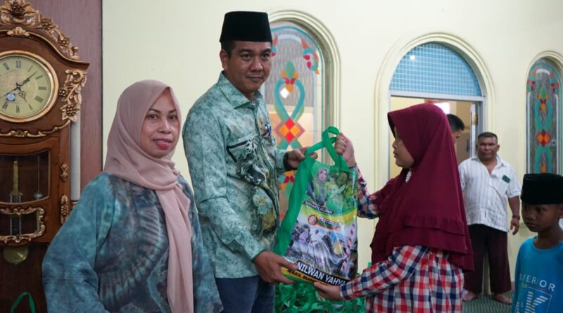 Wabup Merangin Nilwan Yahya dan Wakil Ketua TP PKK Merangin Ny Juniarti Nilwan, menyantuni sebanyak 41 orang anak yatim yang berdomisili di sekitar rumah dinas wakil bupati Merangin, Rabu (13/4/2023).