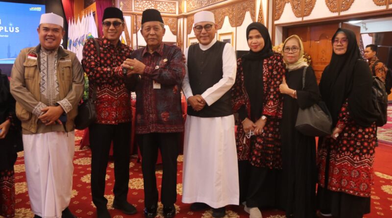 Wakil Gubernur (Wagub) Jambi Drs. H. Abdullah Sani, M.Pd.I melepas 66 orang Jemaah Calon Haji (JCH) PT. Mumtaz Sabila Mabrur (Cholis Tazakka) yang berlangsung di Auditorium Rumah Dinas Gubernur Jambi, Jum’at (07/06/2024).