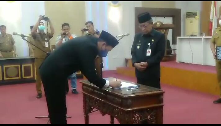 Wakil Gubernur Jambi, Abdullah Sani melantik pejabat administrator dan fungsional ruang lingkup Pemerintah Provinsi (Pemprov) Jambi di Ruang Pola Kantor Gubernur Jambi, Senin (26/9/2022).